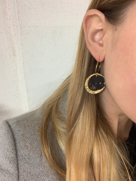 Boucles d'oreilles doré et liège noir LES AJACCIENNES