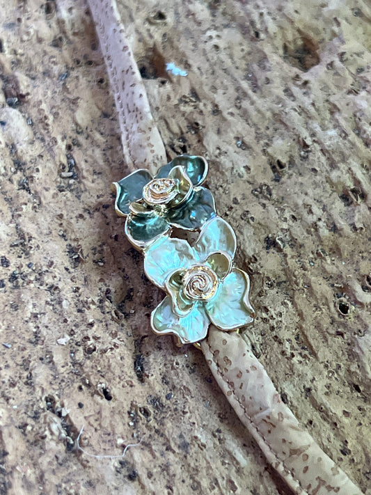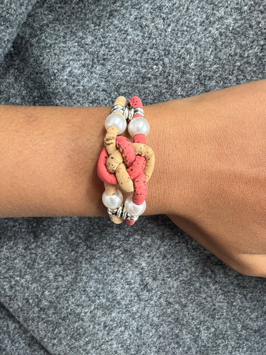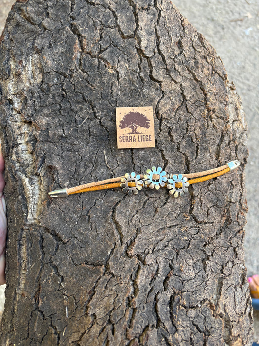 Bracelet Artisanat Corse 2 brins coeur métal en liège