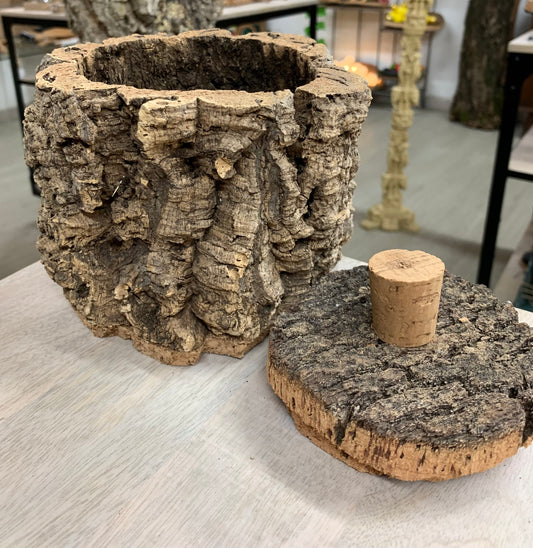 Objets directement travaillés dans des chapes de liège brut n'ayant subi aucune transformation industrielle. Les articles présents dans cette collection proviennent tous de liège récolté en Corse et travaillé artisanalement par nos soins.